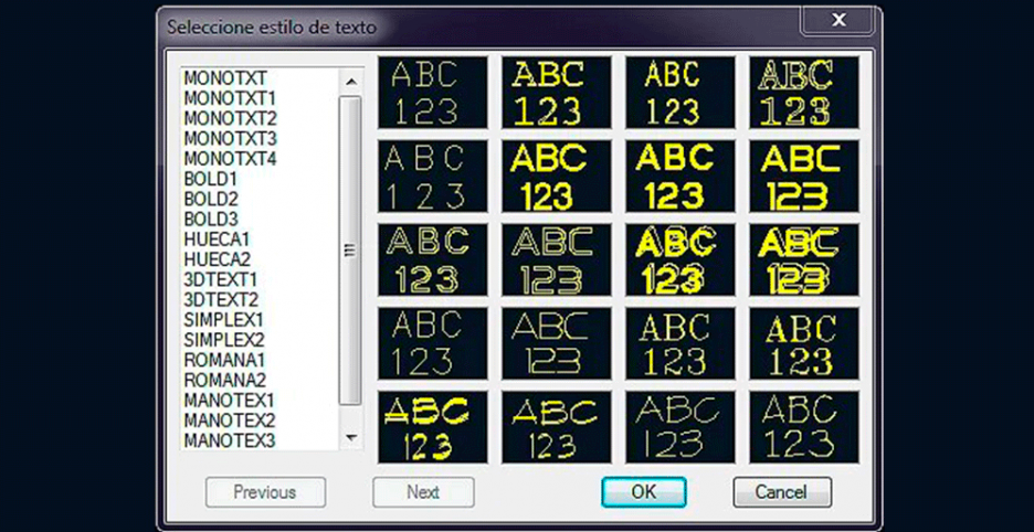 CivilCAD cuenta con 20 estilos de texto predefinidos y extensas rutinas para escribir, anotar, numerar, intercambiar, reespaciar, editar, importar y exportar texto. Con la opción arco-texto se puede escribir a lo largo de una curva. Además, el programa calcula el factor de conversión para poder especificar la altura de texto en milímetros reales o su equivalente en regleta de rotulación mecánica.