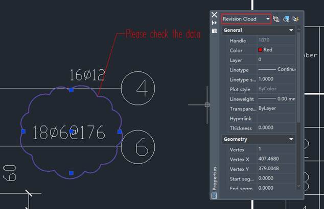 Las formas de la nube de revisión pueden editarse rápidamente arrastrando los pinzamientos de control.
